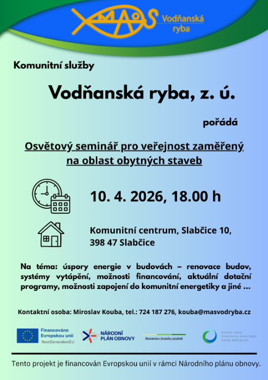 MAS Vodňanská ryba - Osvětový seminář pro veřejnost zaměřený na oblast obytných staveb Platný od: 19.2.2026 Aktualizováno: 19.2.2026 Datum sejmutí 11.4.2026